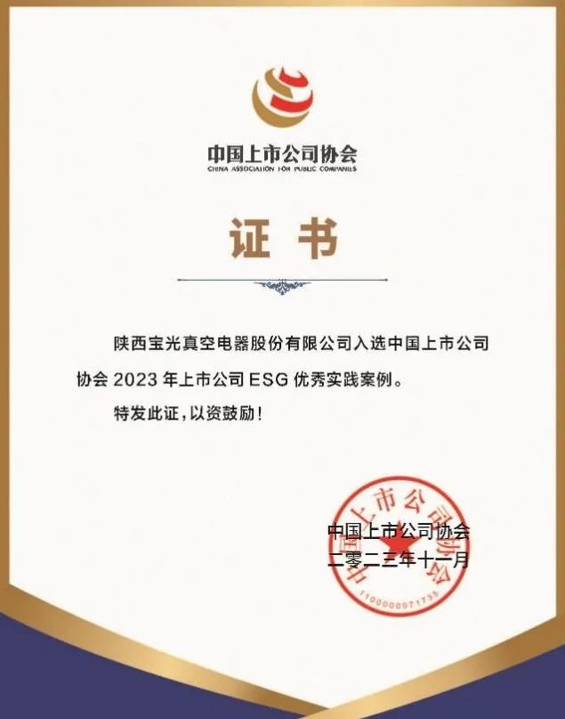 后續,中國上市公司協會將匯編形成《中國上市公司ESG最佳實踐案例2023》在可持續發展大會上發布。獲評優秀ESG實踐案例,充分展現了寶光股份在完善ESG治理體系、貫徹綠色發展理念、履行社會責任等方面的優秀做法。